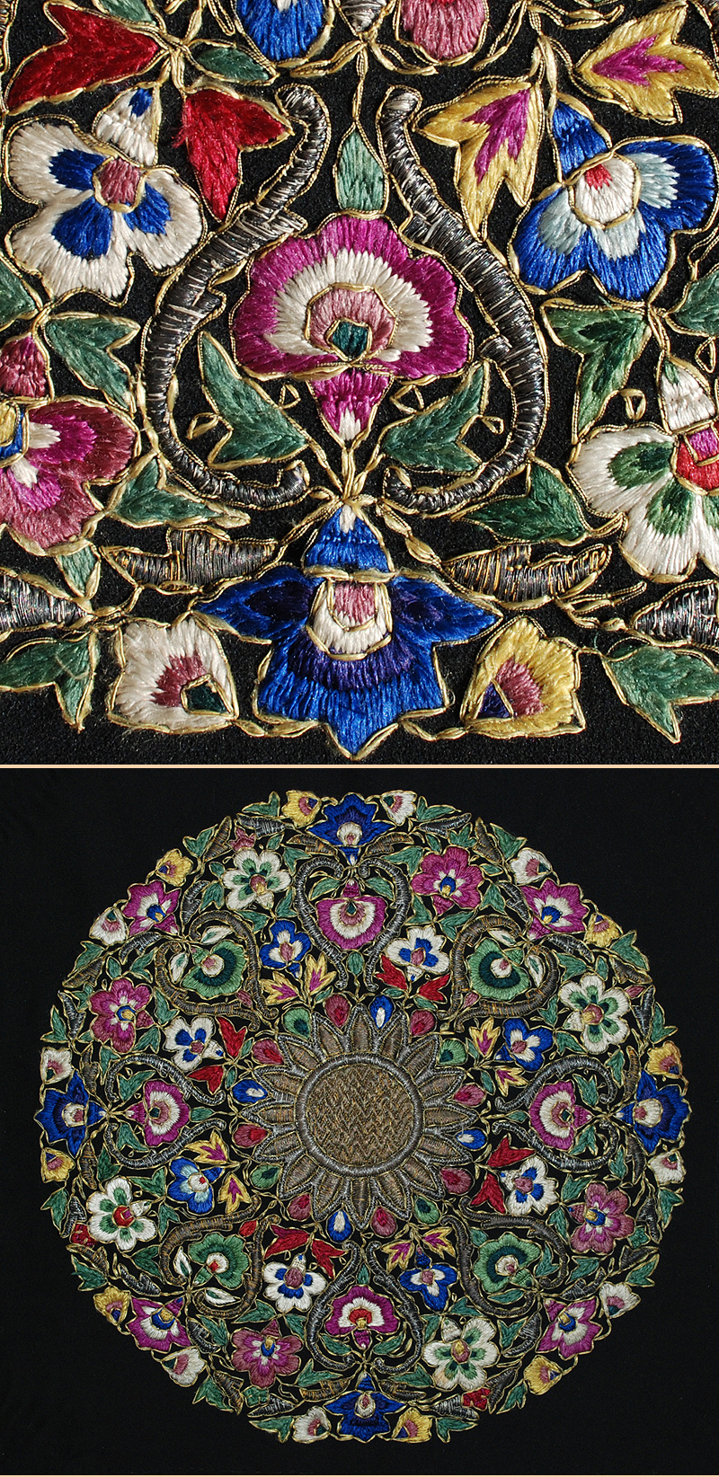 Antique European Silk Embroidery with Silver Thread Mid 19th Century