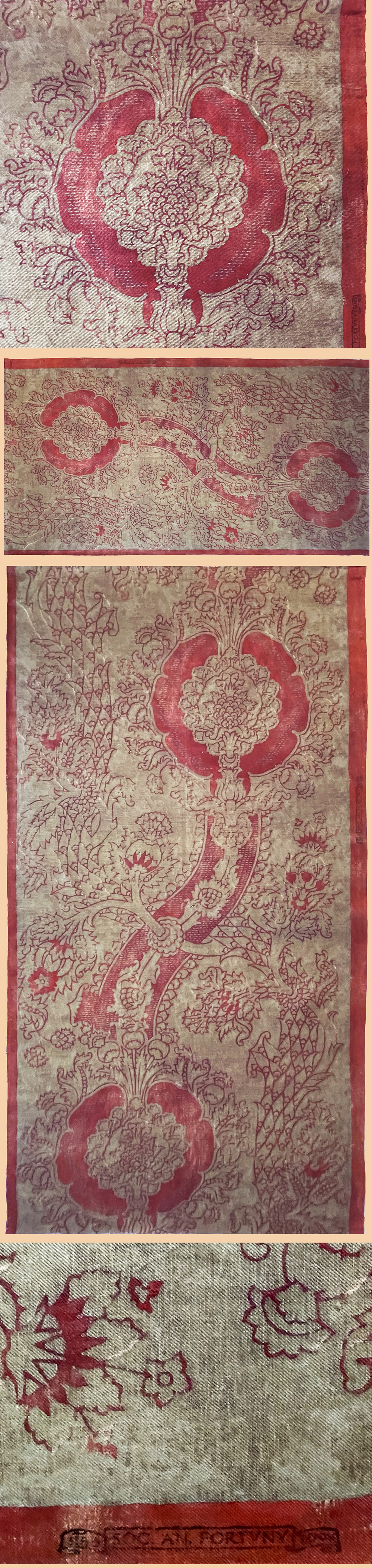 Antique Italian Textile. Mariano Fortuny. Cotton Print of Early 15th Century Italian cut Velvet Design