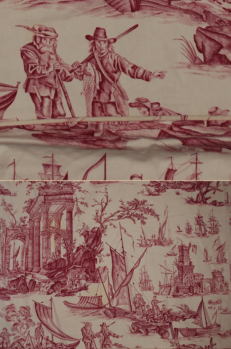 Antique French Jouy Cotton Tabby Weave Copperplate Print 16 pc. bed set