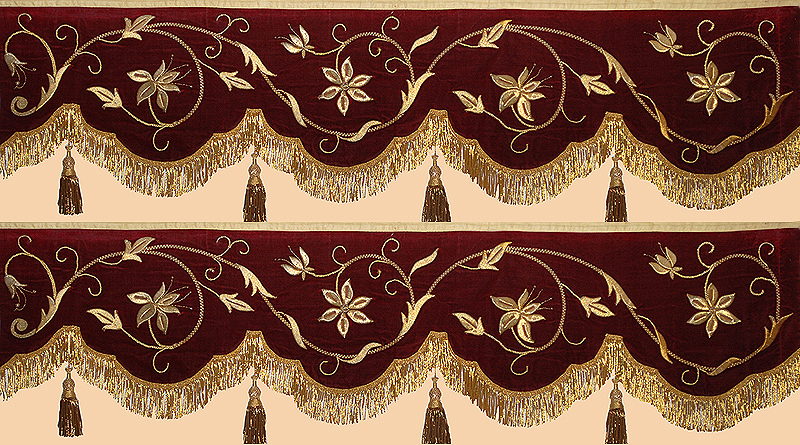 Antique French Textile. Gold thread embroidery on silk velvet two panel.