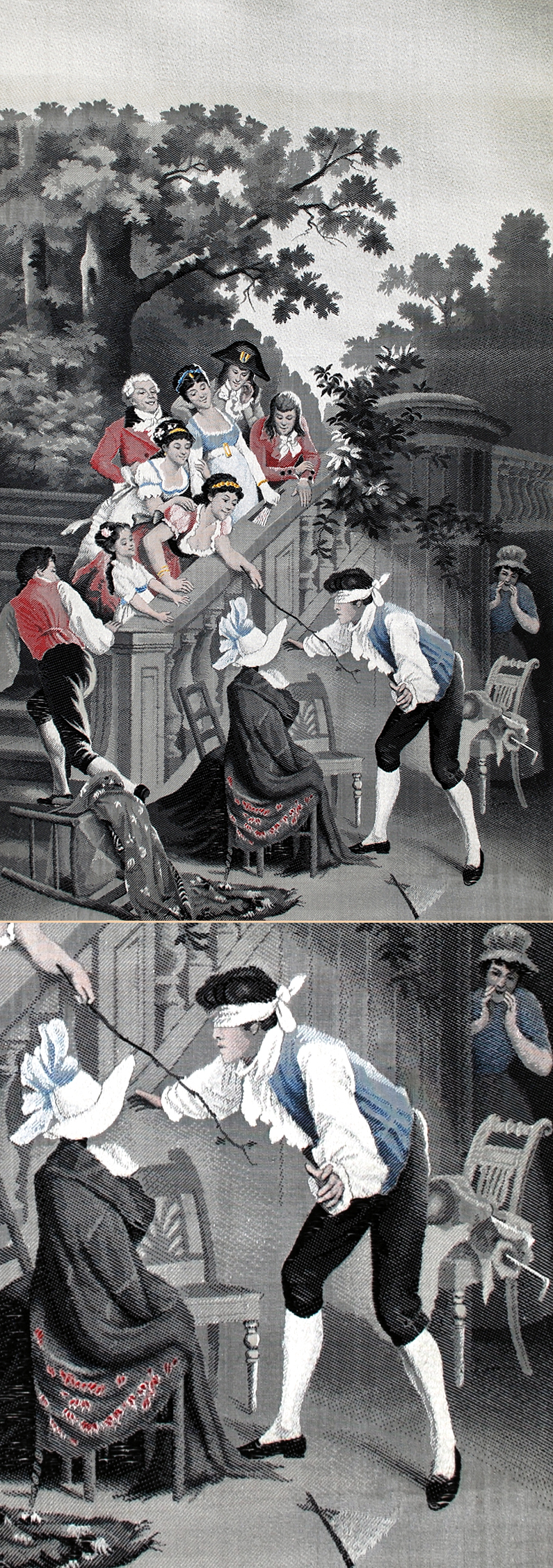 19TH century French woven silk in black and white tones produced by Neyret Freres in Saint-Etienne, France. Neyret Freres were manufacturers of woven silk pictures, who revived the tradition of the finest French tapestry weaving. By using high quality Chinese silk thread in as many as 12 different shades of gray, they produced pictures so fine that the effect is that of an engraving.