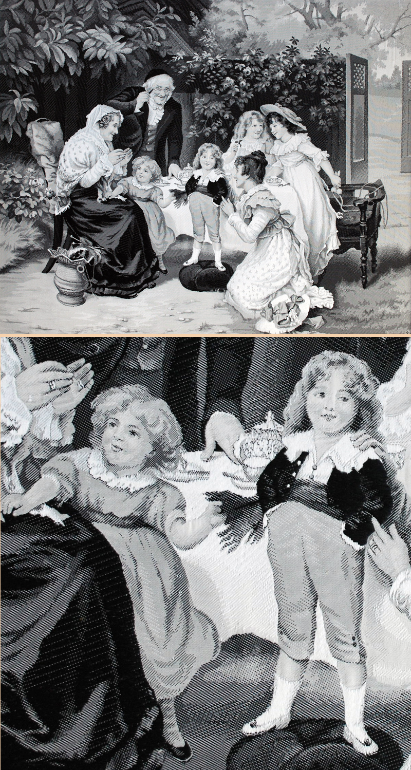 19TH century French woven silk in black and white tones produced by Neyret Freres in Saint-Etienne, France. Neyret Freres were manufacturers of woven silk pictures, who revived the tradition of the finest French tapestry weaving. By using high quality Chinese silk thread in as many as 12 different shades of gray, they produced pictures so fine that the effect is that of an engraving.