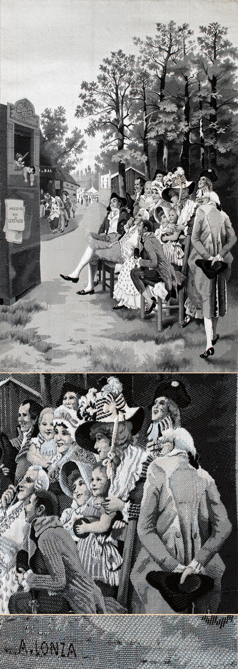 19TH century French woven silk in black and white tones produced by Neyret Freres in Saint-Etienne, France. Neyret Freres were manufacturers of woven silk pictures, who revived the tradition of the finest French tapestry weaving. By using high quality Chinese silk thread in as many as 12 different shades of gray, they produced pictures so fine that the effect is that of an engraving.