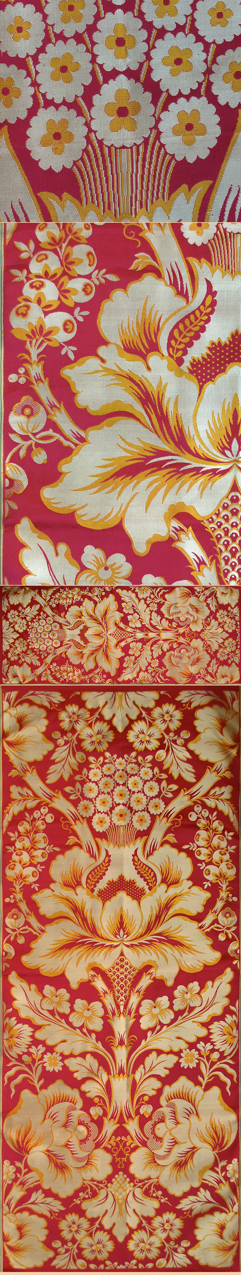 Antique French Textile,Crimson Satin Lampas Circa 1780-90 Lyon, France