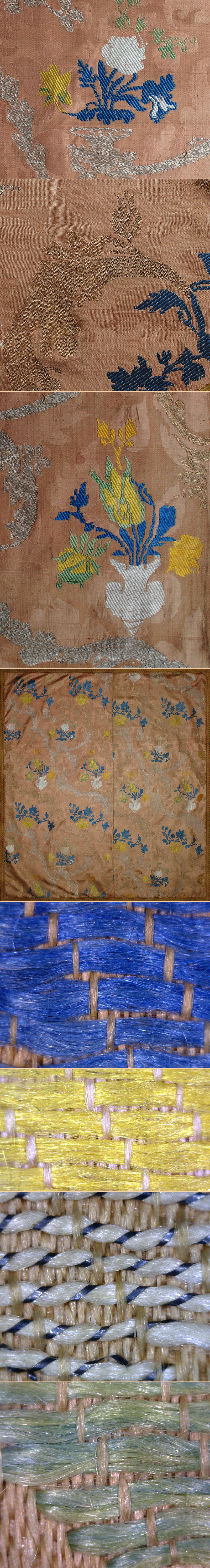 Antique French Textile,Crimson Satin Lampas Brocade with Silver
