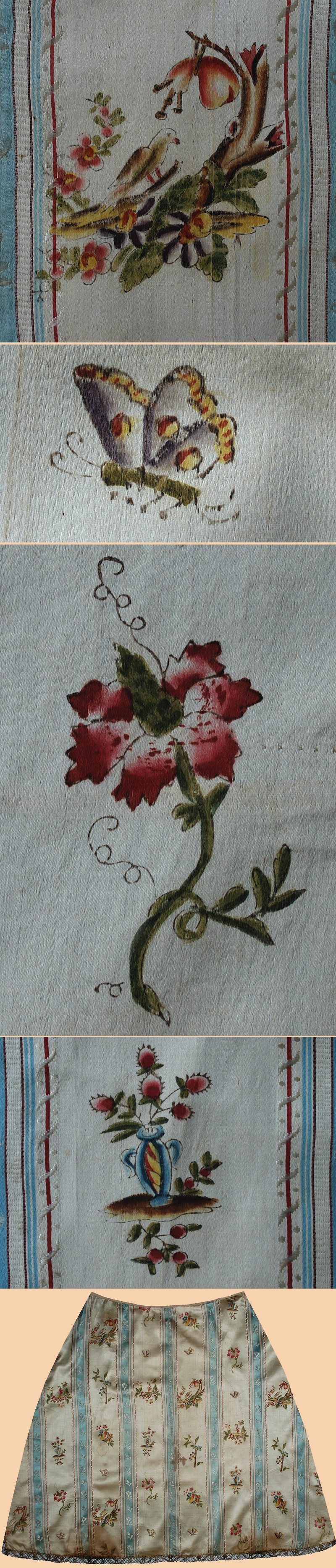 Antique French Textile, Satin Lampas Block Print 18th Century Lyon, France