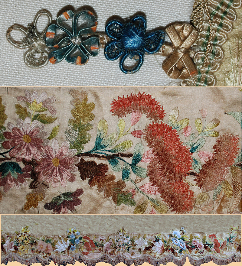 Antique French Textile chenille silk Embroidery Panel Circa 1800