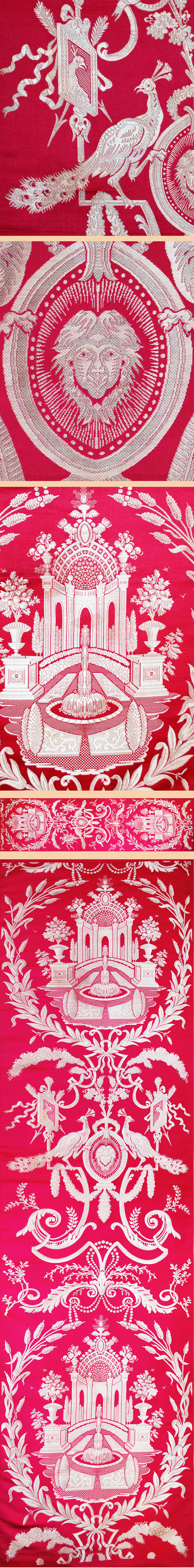 Antique French Textile.French Crimson Satin Lamps. Lyon Crica 1780-90