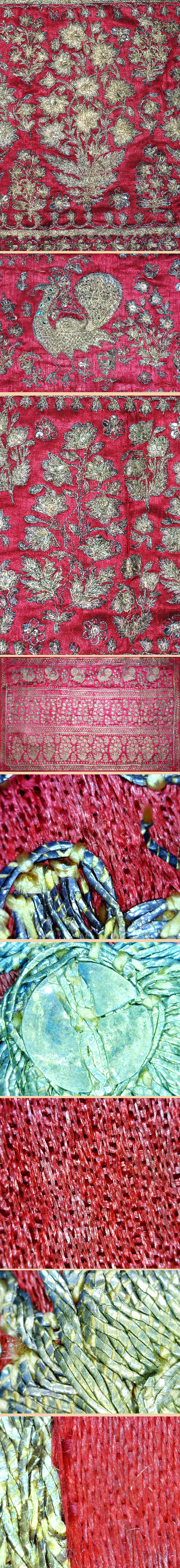 Antique Indian Textile. Silk Embroidery with Silver Thread. Mughal Dynasty 1526-1857A.D