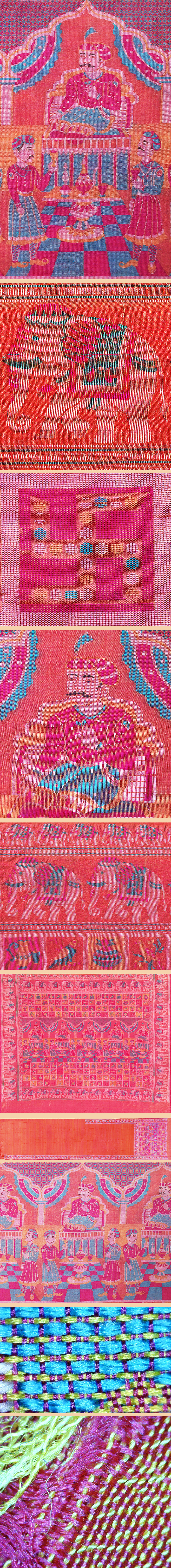 Antique Indian Costume. Silk Sari Brocade with Servant and King