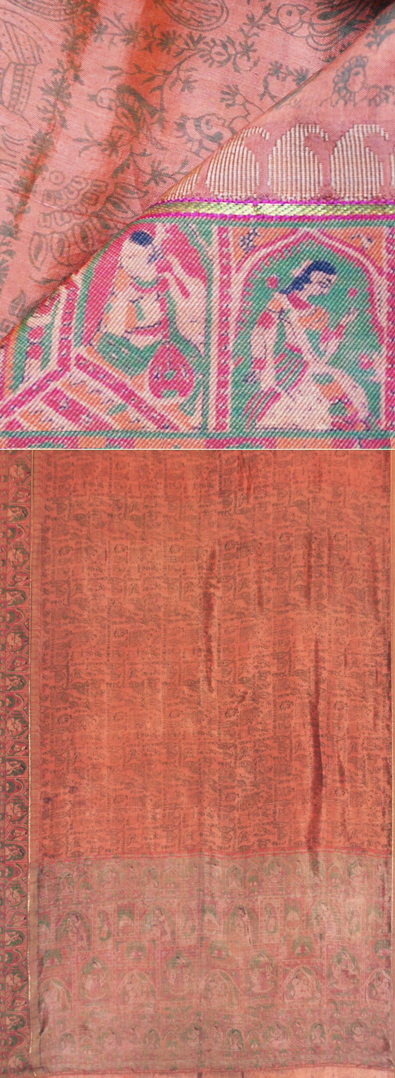 Antique Indian Sari. Silk Sari Block Print 1800 - 1900 A.D