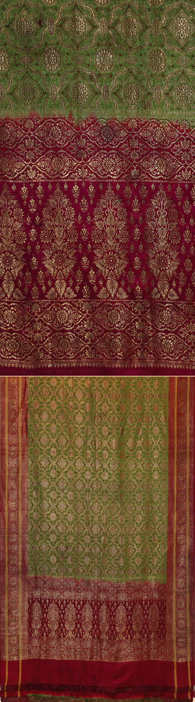 Antique Indian Sari. Silk Brocade with Gold Thread Sari 1800 - 1900 A.D