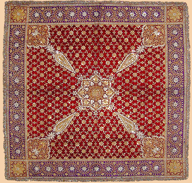 Antique Indian Textile. Silk Embroidery with Gold and Silver thread. 1800-1900 A.D