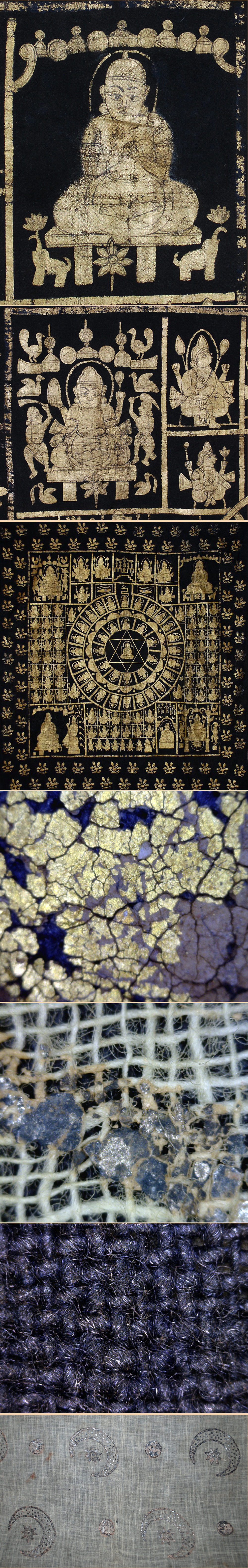 Gold pigment on black textile.Siddhachakra paintings are worshipped