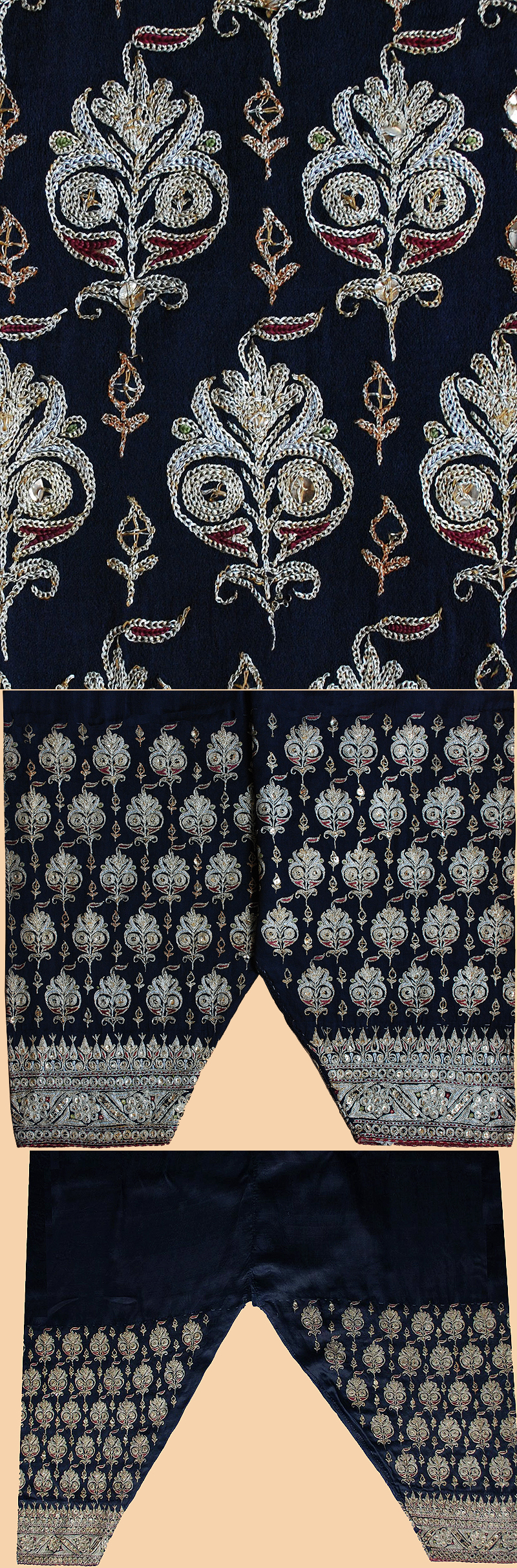 Antique Indian Costume. Silk trousers with gold embroidery. Formerly part of the estate of Laurance S. Rockefeller. 1800-1900 A.D