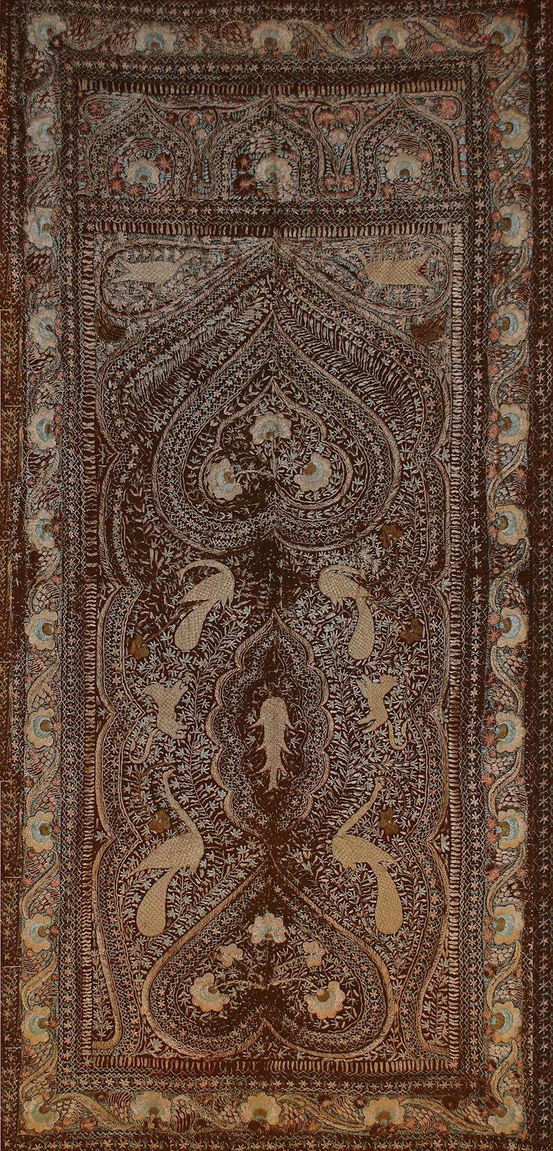 Antique Indian wall Hanging silk embroidery on felt 1800-1900 A.D