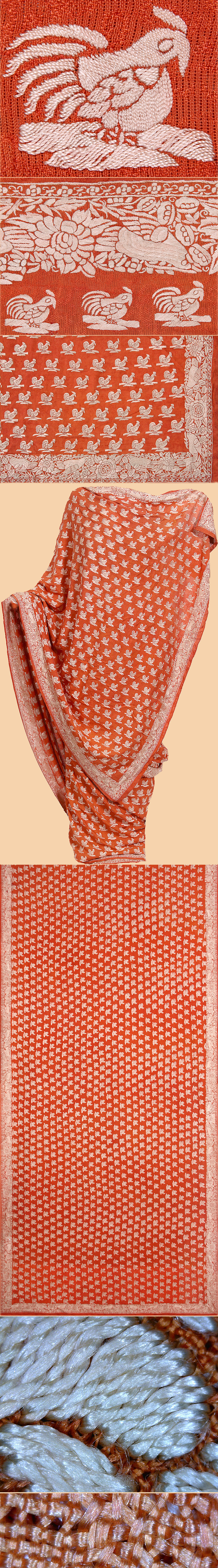 Embroidery of very distinct characteristics developed in the urban center of Surat on the western coast of India.A colony of Chinese artisans started producing garments for another immigrant colony, that of the Zoroastrians- Parsi, originally from Iran where they were persecuted and therefore migrated. The design as well as the handwork are unmistakably Chinese, yet the garments are Indian wear like saris, skullcaps and blouses.