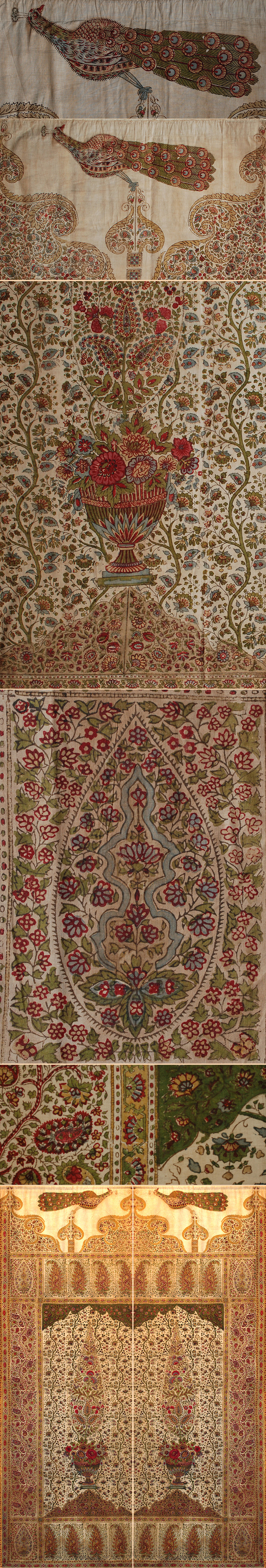 Antique Indian Block Print on Cotton two Panel Door Cover Mughal Dynasty 1526 - 1857 A.D