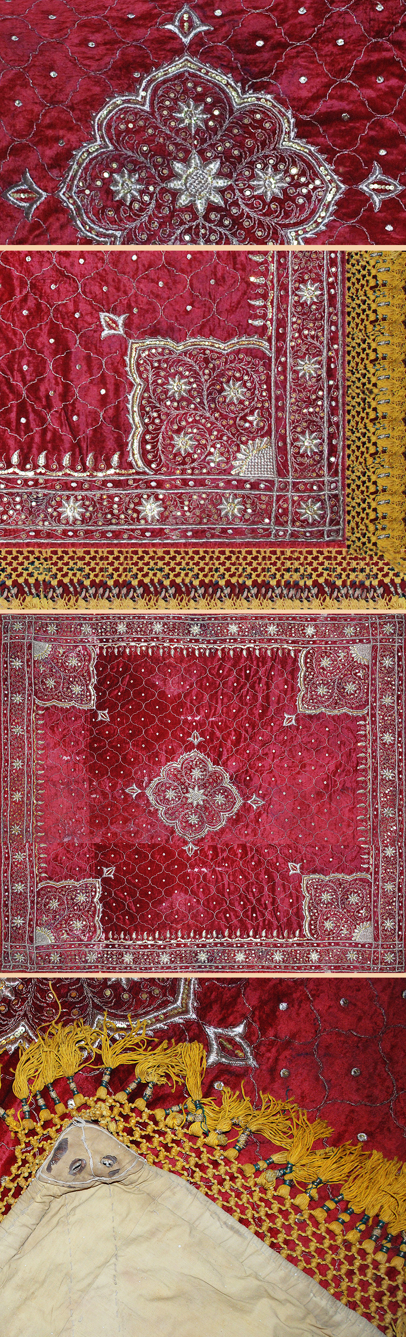 Antique Indian Silk & Silver Embroidery on Red Velvet made for Tent Cover 1850 - 1900 A.D