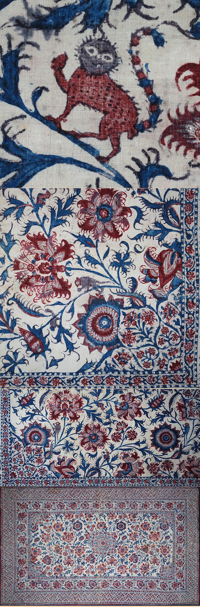 Antique Indian Textile. Probably Coromandel Coast Cotton Block Print 1800 - 1850 A.D