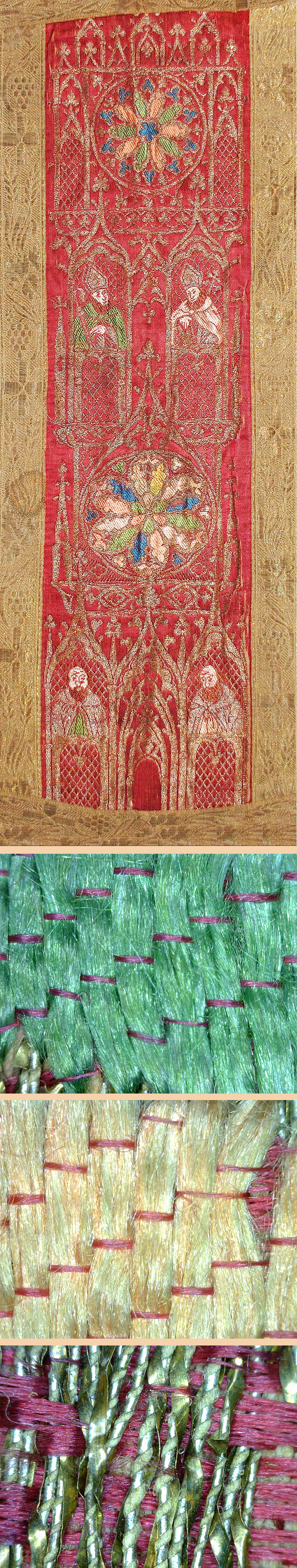 Antique Italian Textile, Silk Brocade Stain Glass Design