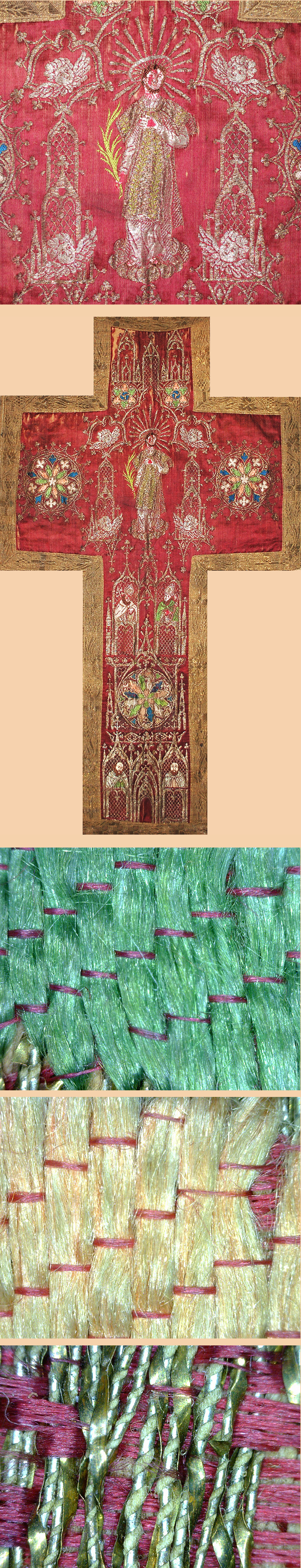 Antique Italian Textile, Silk Brocade Stain Glass Design