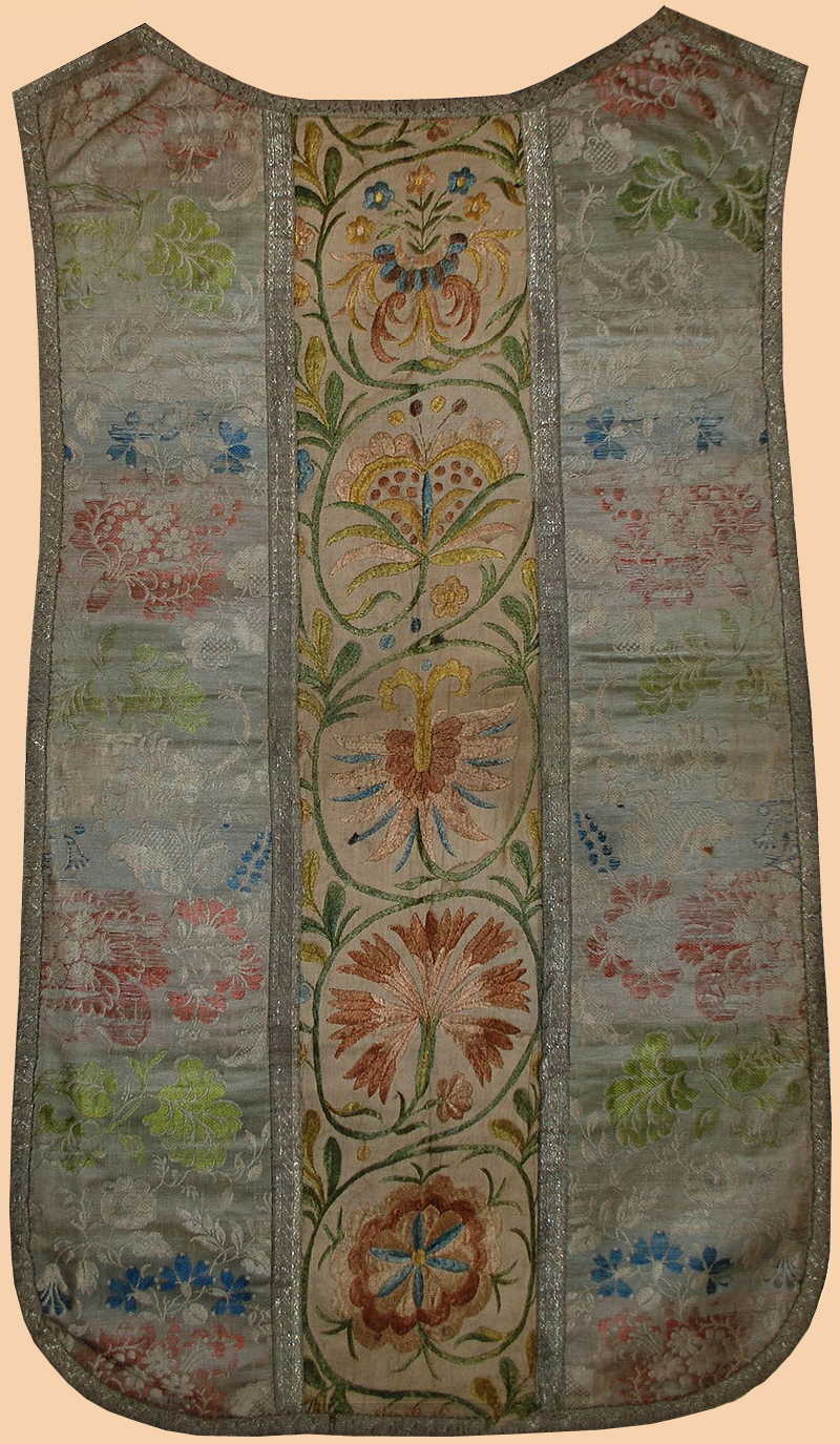 Antique Italian Textile, Silk Brocade & Silk Embroidery Chasuble ( vestment)