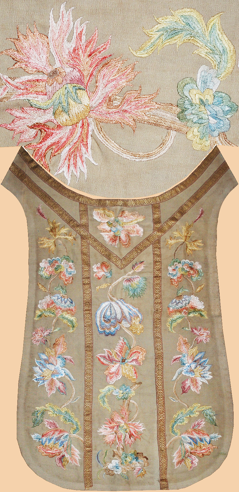 Antique Italian Textile, Silk Embroidery Chasuble ( vestment)
