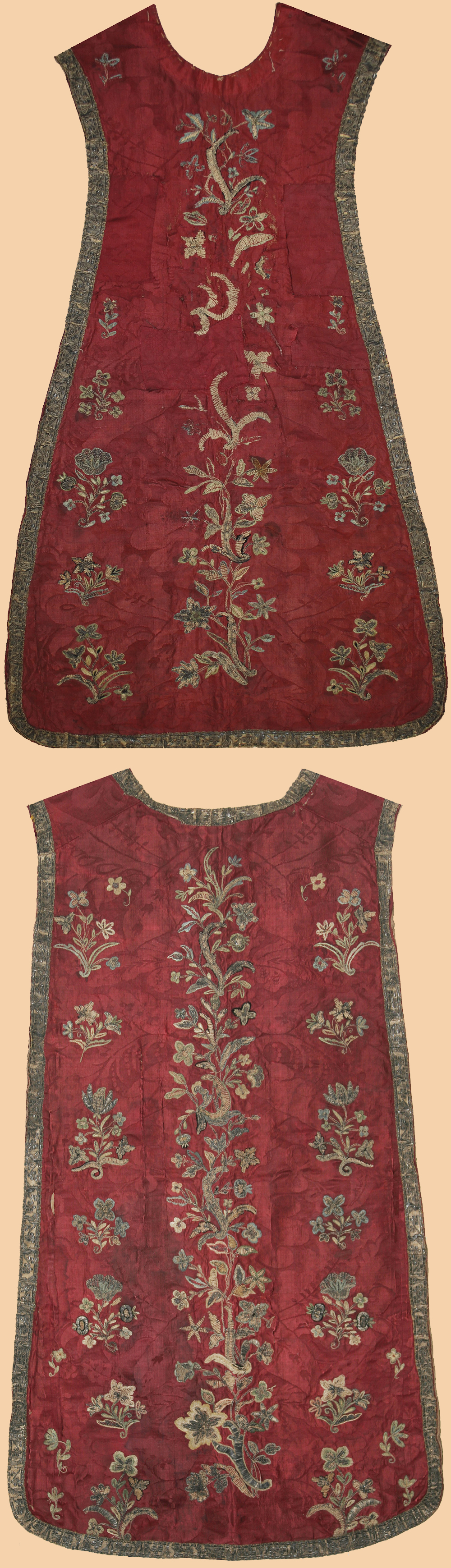 Antique Italian Textile, Silk Brocade & Silk Embroidery Chasuble ( vestment)