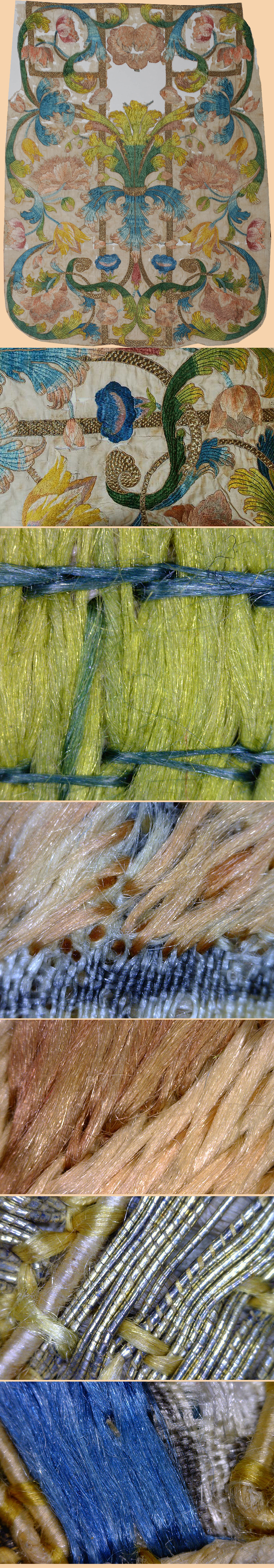 Antique Italian or Spainsh Textile, Silk Embroidery Chasuble Detail below