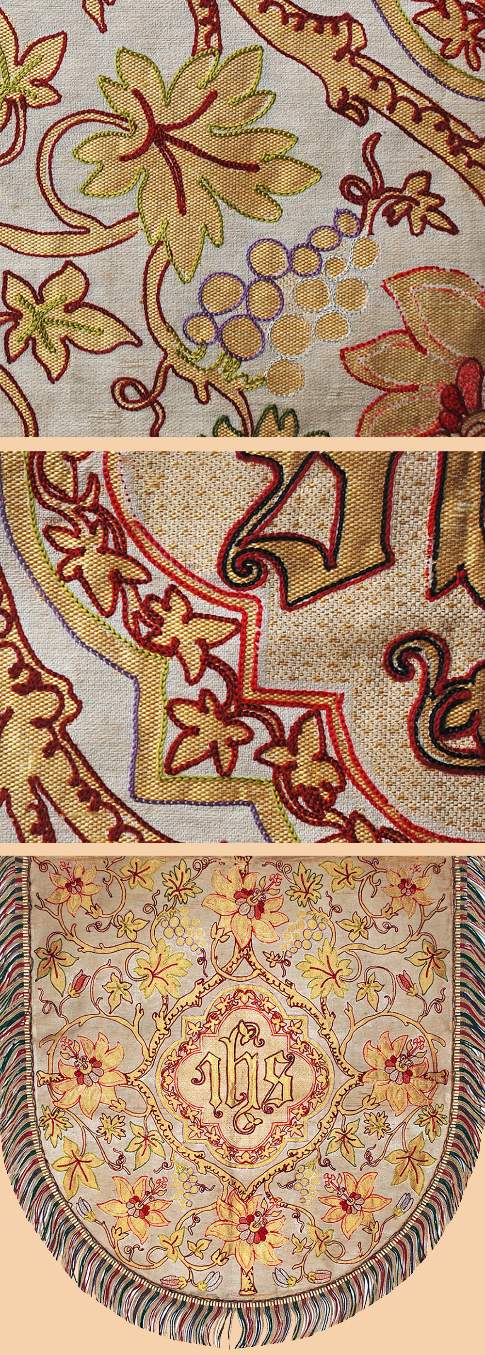 Antique Italian Textile. Silk Embroidery Hood from a Cope
