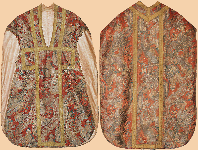 Antique Italian Textile, Silk & Silver Brocade Chasuble 17th Century Size 44" x 27" Size 112 x 69cm
