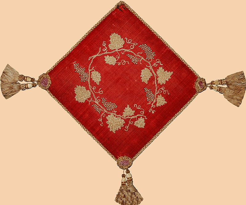 Antique Italian Textile, Silk Embroidery on Velvet 18th Century Size 9" x 9" Size 23 x 23cm