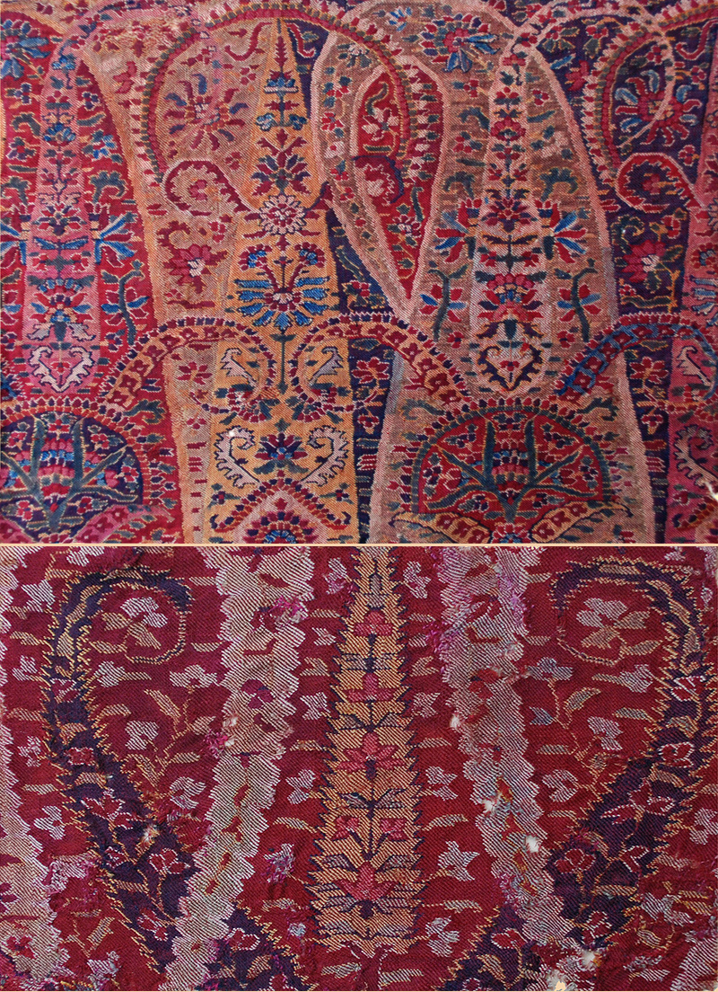 Many of the shawls are woven in separate pieces and then carefully joined, this being so skillfully done that the seams are scarcely discernable. The time required for weaving a shawl varies, of course, with the pattern. and the fineness of the threads used: usually three or four weavers are engaged upon a single shawl from three months to two years. There are rarer patterns, of course, that embody infinitely more labor than this. The price of the more common shawls varies from 400 to 1600 rupies ($200 to $800).