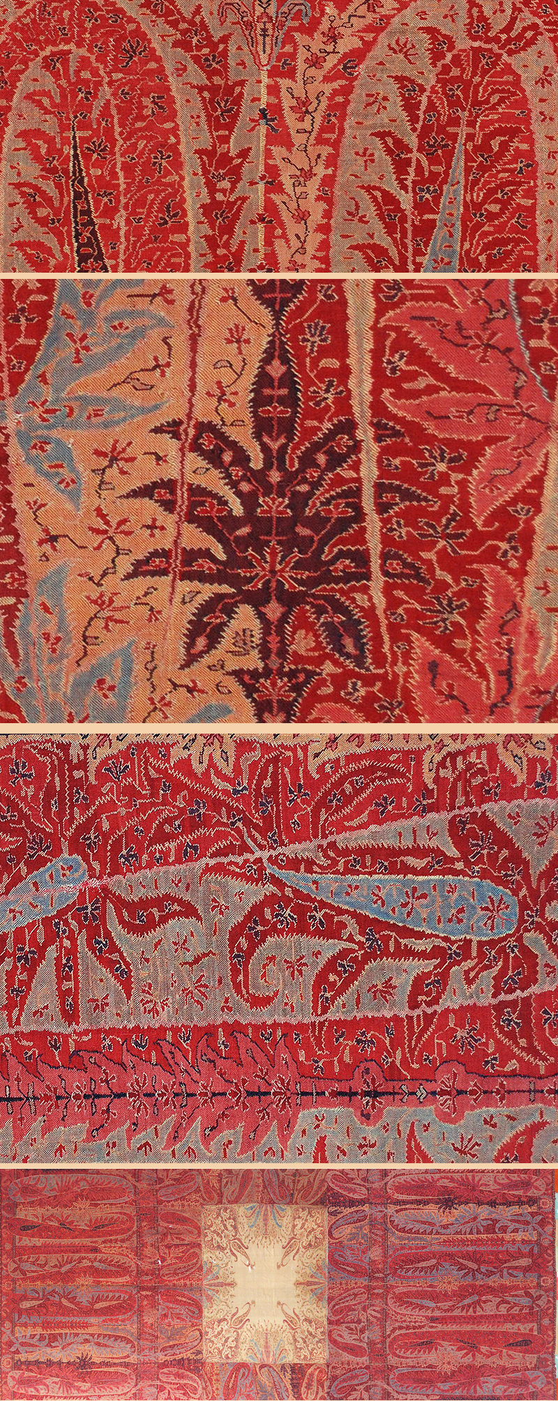 Many of the shawls are woven in separate pieces and then carefully joined, this being so skillfully done that the seams are scarcely discernable. The time required for weaving a shawl varies, of course, with the pattern. and the fineness of the threads used: usually three or four weavers are engaged upon a single shawl from three months to two years. There are rarer patterns, of course, that embody infinitely more labor than this. The price of the more common shawls varies from 400 to 1600 rupies ($200 to $800).