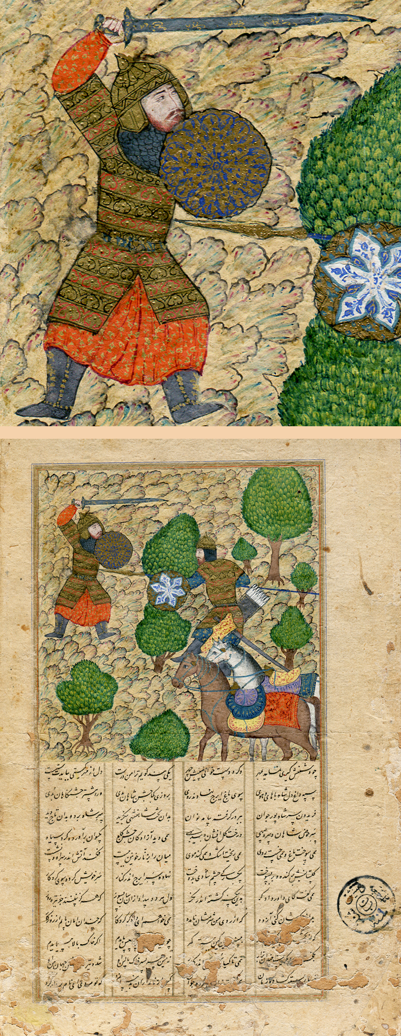 Antique Persian Miniature Painting Safavid, from Shahnama, the Manuscripts is Ferdosi, Poem
