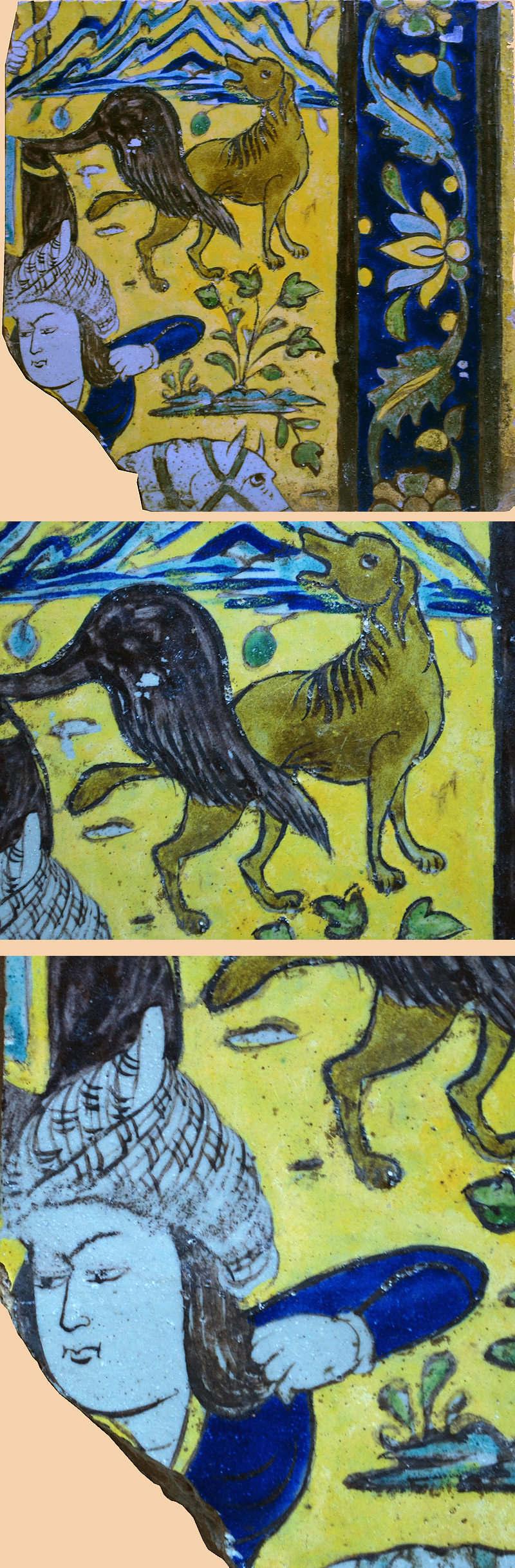 Extraordinary Rare Antique Persian Iran Safavi PolychromeTile with figure painted in underglaze