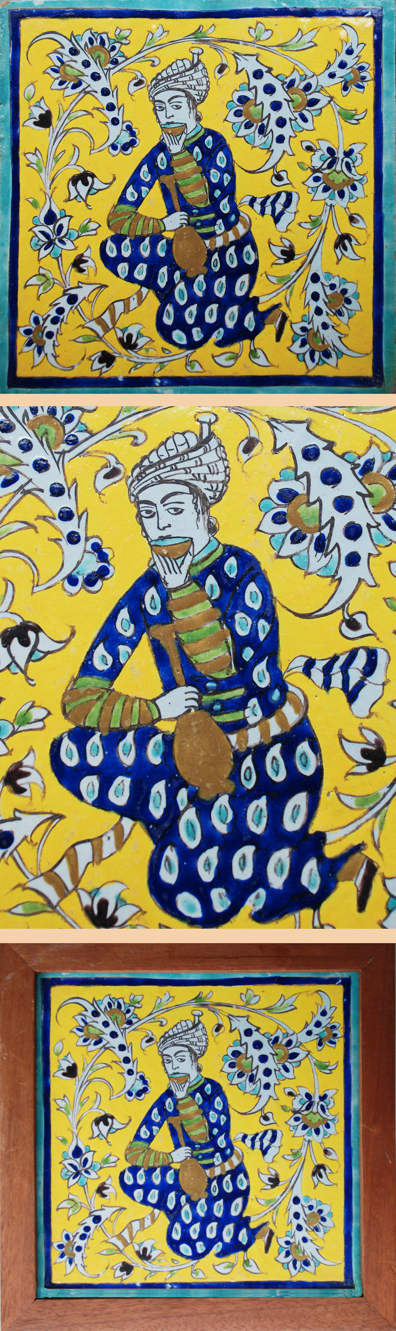 Extraordinary Antique Persian Iran Safavi PolychromeTile with figure painted in underglaze