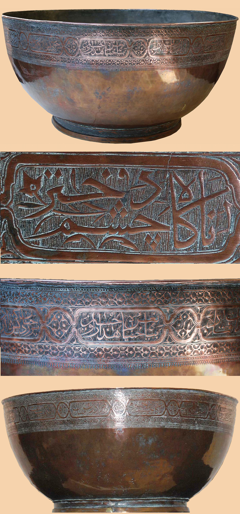 Antique Islamic Persian Safavid Copper Bowl with Farsi Calligraphy