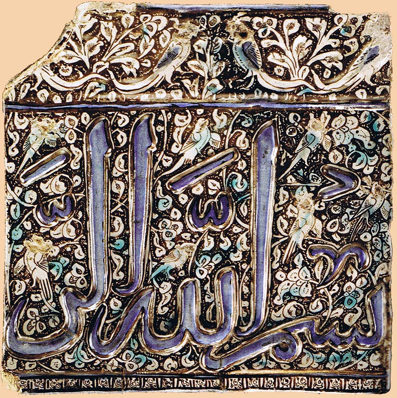 Antique Islamic Persian Tile, A Kashan Calligraphic Luster Pottery Tile From The Shrine of Natanz, Central Persia,