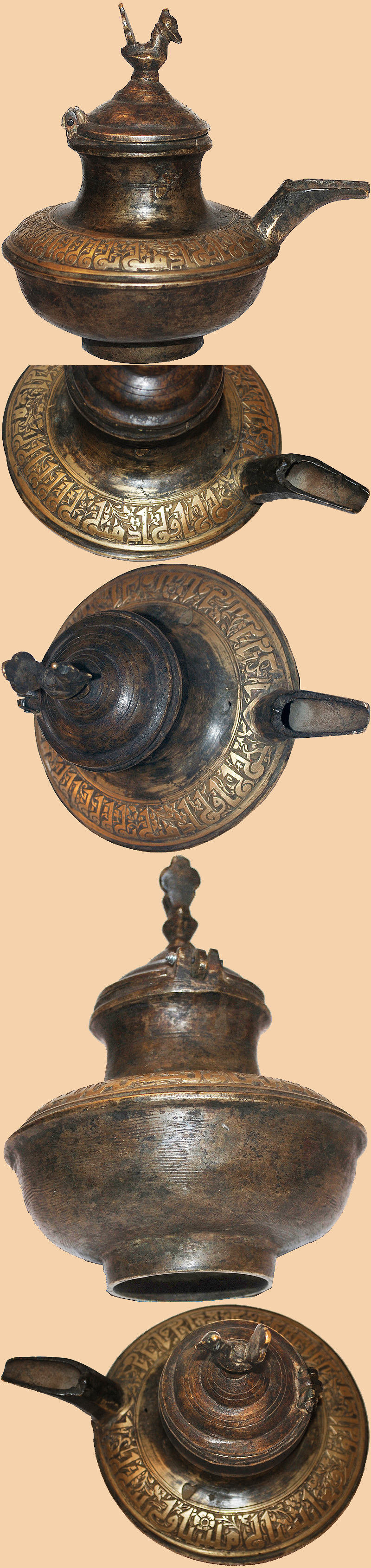 Antique Persian Seljuk Oil Lamp with Islamic Calligraphy