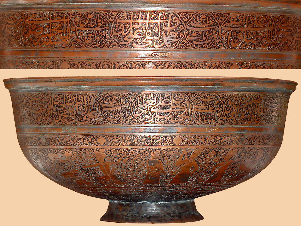 Antique Islamic Persian Safavid Copper Bowl With Farsi Calligraphy