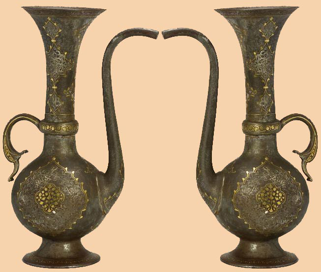 Antique Persian Damascened Steel Engraved with Gold Inlaid design Qajar dynasty