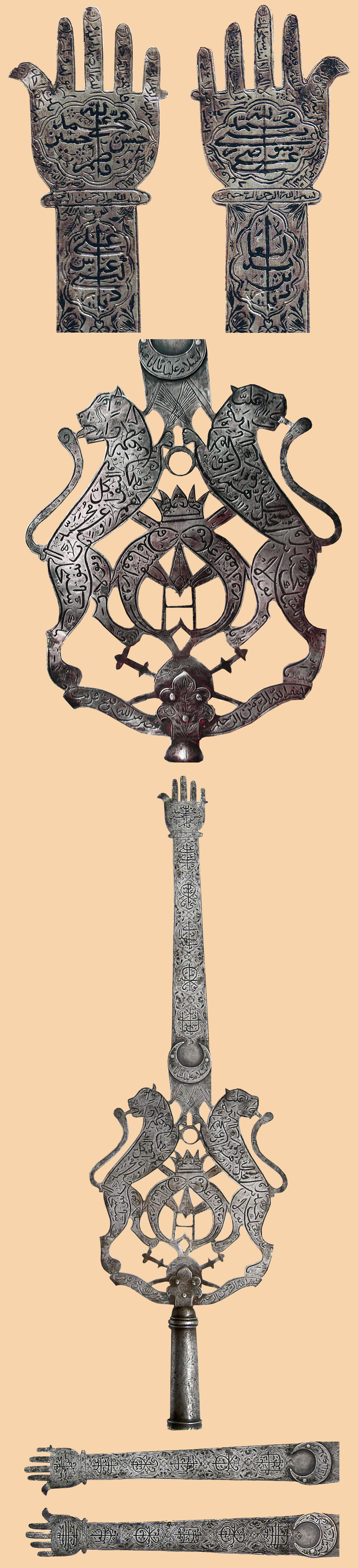 Antique Islamic Persian Safavid Silver Alam with Farsi Calligraphy