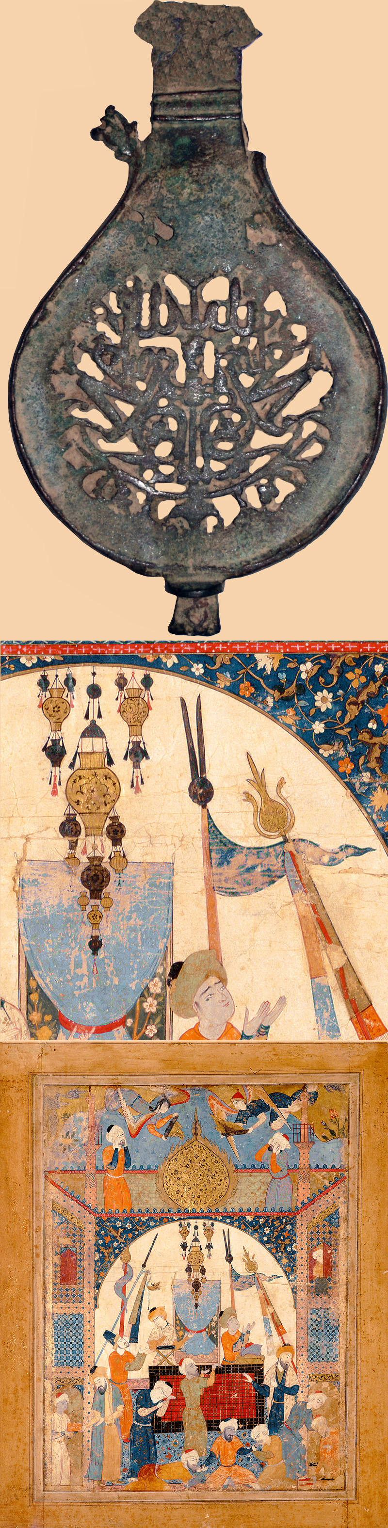 Antique Islamic Persian Seljuk Bronze Alam with Islamic Calligraphy