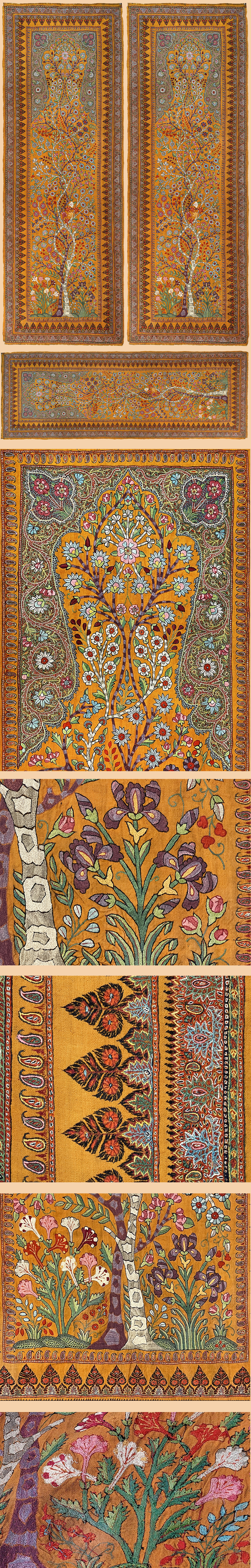An Important Mid 19th Century Qajar dynasty Kerman Embroidery Wool on Wool Tapestry Wall Hanging Window Cover