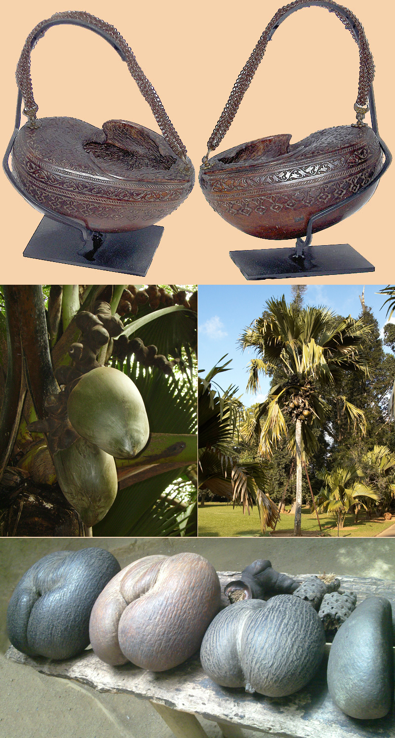 Kashkuls carried the donations on which dervishes relied for sustenance and also functioned as drinking vessels or food containers for wandering ascetics. They simultaneously symbolized the emptying of the Sufi’s soul or ego through the renunciation of worldly goods and aspirations, and the nourishment of that soul with divine knowledge. Many the coco-de-mr palm native to Seychelles Island of the Indian Ocean. The shells’ lengthy sea voyage to the shores of Iran carries special significance as a metaphor for the Sufi’s mystical journey. The top of this example shows a paradisiacal scene of birds in flowering, fruit laden trees.