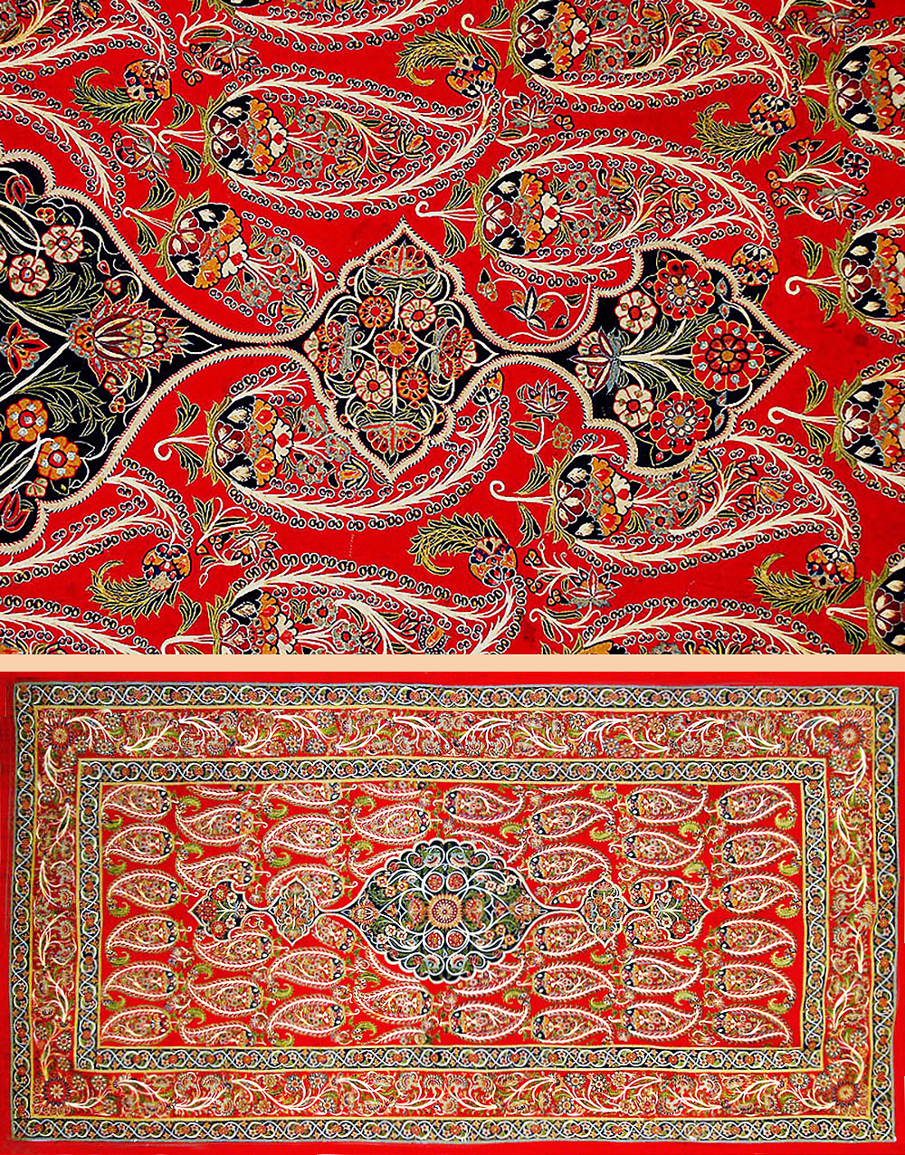 Antique Persian Textile. Rashti-Duzi Silk Embroidery on Felt Table Cover. Qajar Dynasty 1795 -1925 A.D
