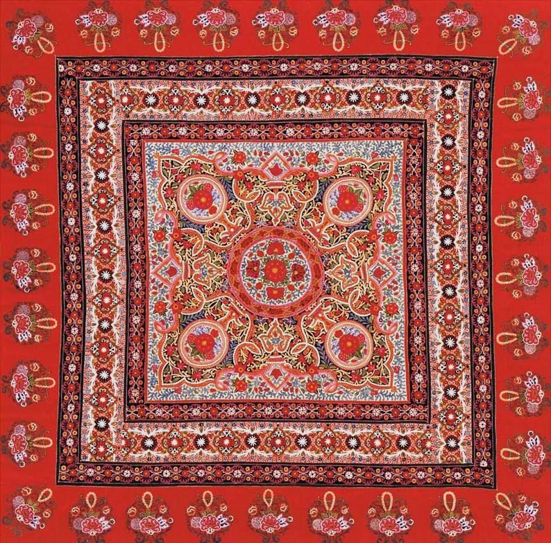 Antique Persian Textile. Silk Rashti- Duzi Embroidery on Felt Table Cover Qajar Dynasty 1795 -1925 A.D Circa 1860
