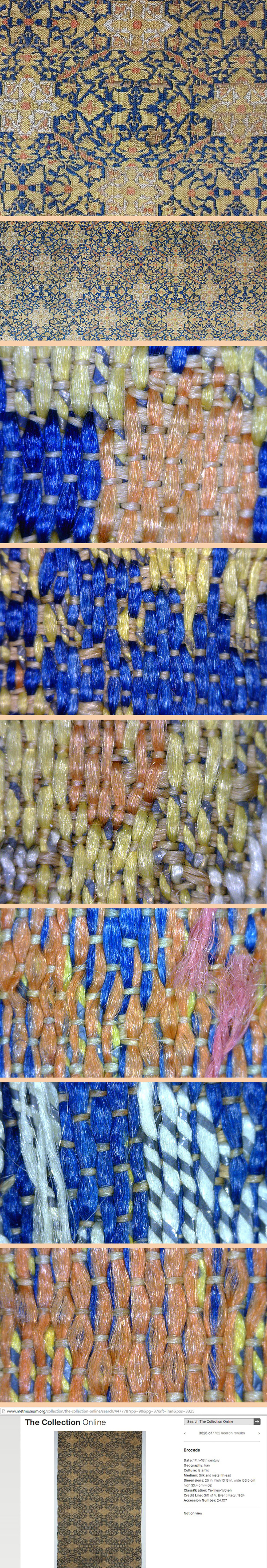 Metropolitan Museum of Art has similar textile in their inventory pictures below